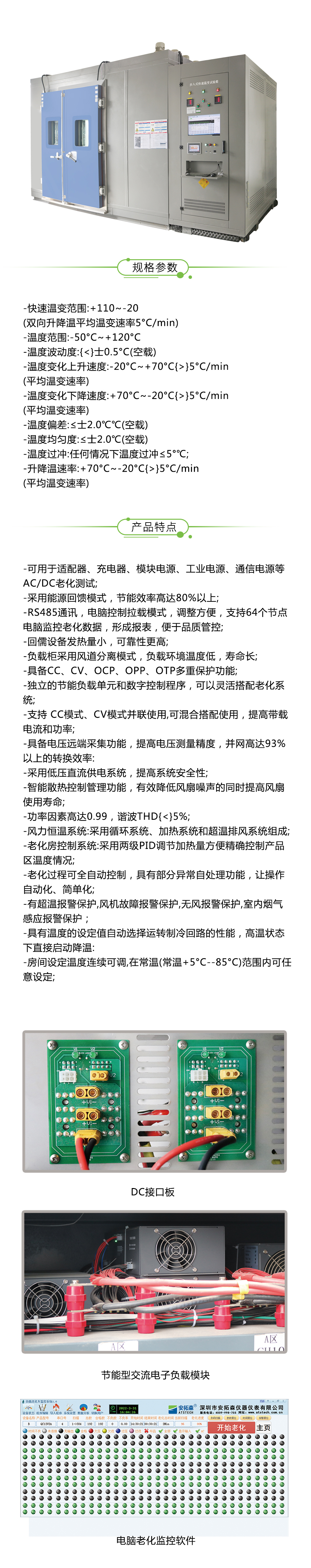 *电脑监控老化数据,形成报表,便于品质管控;*回儒设备发热量小,可靠性更高;