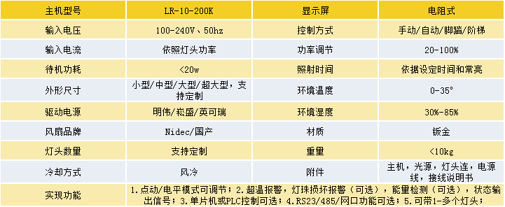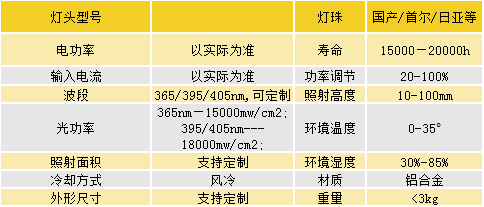 ●无红外辐射,灯下温度较低,适用于各类热敏感材料的固化