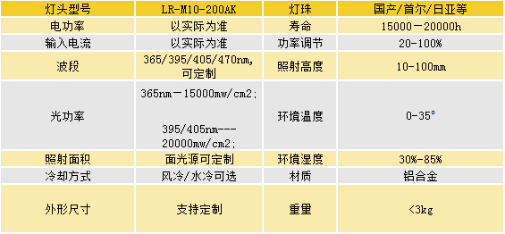 ●无红外辐射,灯下温度较低,适用于各类热敏感材料的固化