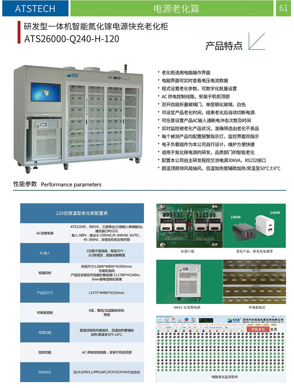 深圳市安拓森仪器仪表主营产品包括快充氮化镓老化柜、老化架、针对氮化镓GaN老化我们拥有丰富的经验, 随着电子设备的普及与性能提升,充电器也从普通硅基技术逐步迈向更高效、更便携的氮化镓(GaN)技术,针对氮化镓电源老化,深圳安拓森可定制65W/100W/120W/140W/240W/280W氮化镓老化柜,为您提供全面的氮化镓电源解决方案。以下这款是一体式240瓦120位的氮化镓恒温老化柜,老化柜选用电脑操作界面更方便用户操作,可通过电脑界面实时查看电压电流数据,单口产品可同时老化120个产品,双口产品60个,支持QC4.0/PD3.1/PPS/AFC/FCP/SCP/IVO全协议。安拓森从事电源老化行业15余年,一直是氮化镓电源老化的领军企业。欢迎交流探讨。#氮化镓老化柜 #氮化镓老化设备