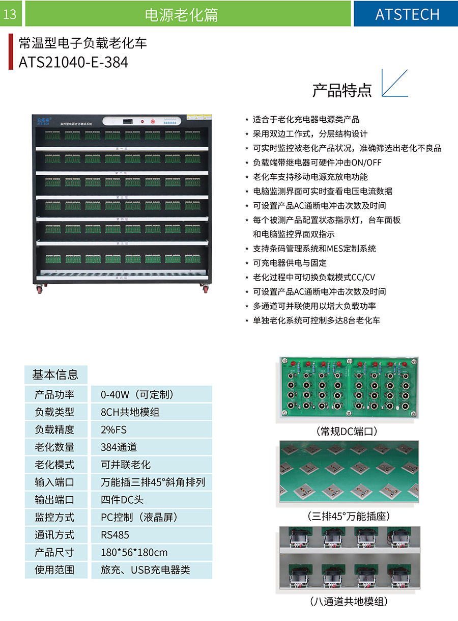 Scope of application: Aging of power products such as chargers and adapters. # Charger Aging Cabinet # Adapter Aging Cabinet # Power Aging Vehicle # Electronic Load Aging Equipment