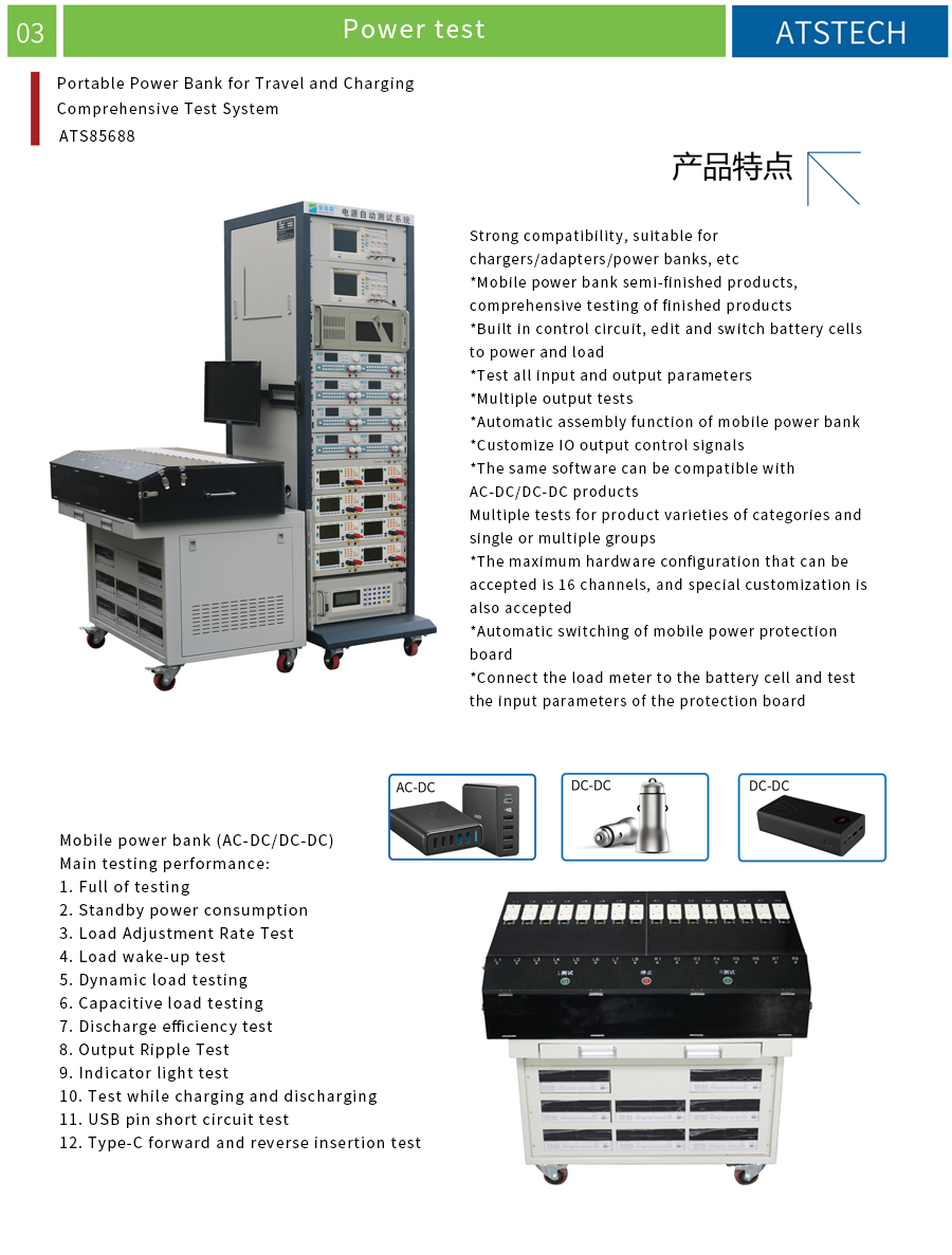 ATS85688 comprehensive testing system for Antuosen mobile power vehicle travel charger: