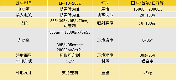 ●无红外辐射,灯下温度较低,适用于各类热敏感材料的固化