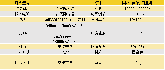 ●无红外辐射,灯下温度较低,适用于各类热敏感材料的固化