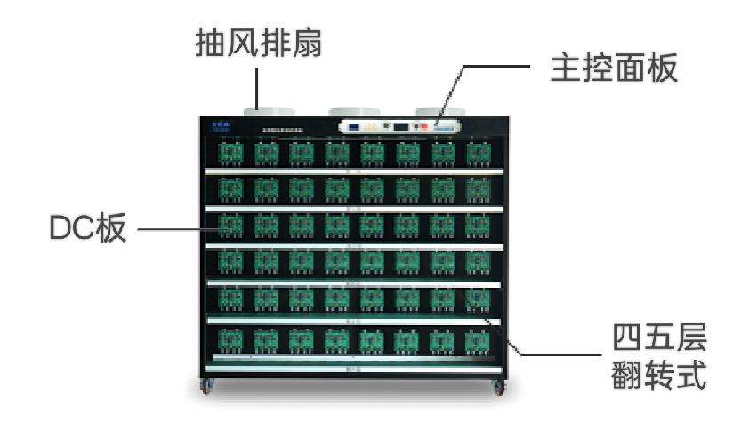 老化柜直流采集模块智能检测输出端电压、电流等参数,为程控直流电源输出电流电压,再通过电脑老化软件体现数据和曲线图,以便于直观评估应急启动电源在充放电时间内的变化,判断产品的过充、过流、耐压等保护功能是否正常。恒温型老化柜配有白色折叠式玻璃门,最低室内温度,最高60°C,内部由于匀风原理考量产品的环境适应性。