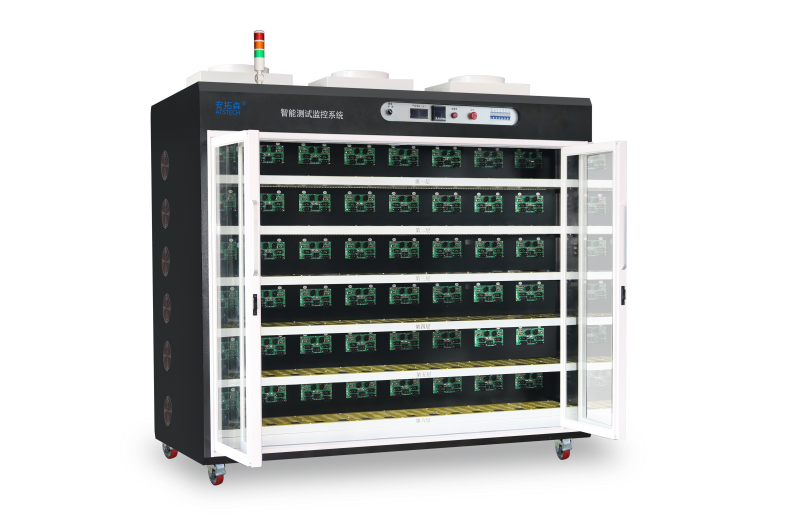 (一)这是一台由深圳市安拓森仪器仪表有限公司生产制造的老化测试设备,其基本原理是由直流电源通过AC输入接口给产品进行供电,再从DC接口带载到对应的负载模组,实现模拟产品的使用,老化时的温控功能可针对室内产品的承受能力进行调整,这一系列老化过程所生成的数据会作为对产品质量的评估。